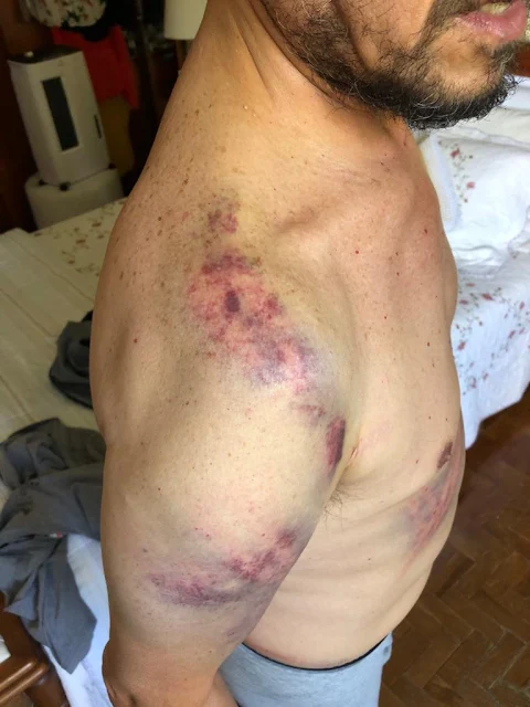Professor de física José de Jesus Cherrin Fernandes com muitos hematomas pelo corpo